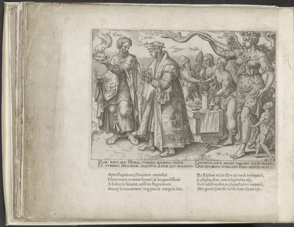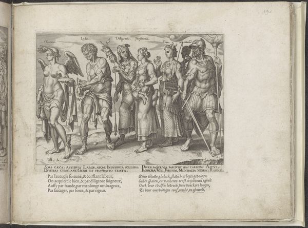 Philips Galle made this engraving, *Huwelijk tussen Arbeid en Vlijt*, or *Marriage between Labor and Diligence*, sometime in the late 16th or early 17th century. The basic process involves incising lines onto a metal plate, inking it, and then pressing paper against it to transfer the image. Here, Galle uses this process to explore social and cultural significance. The detailed lines and textures create depth and realism, yet the allegory also brings a conceptual dimension. The act of engraving itself demands labor and diligence. The artist’s skilled hands carve each line, mirroring the virtues celebrated in the image. The choice of printmaking also speaks to the wider context of labor and politics. Prints were relatively accessible, and helped spread ideas widely. In this image, we see labor and diligence as virtues essential for a flourishing society. Galle’s print, made through careful work, participates in this vision, making it available for mass consumption. Ultimately, understanding the materials, making, and context of Galle’s print enriches our appreciation, blurring the lines between art and craft, labor and ingenuity.