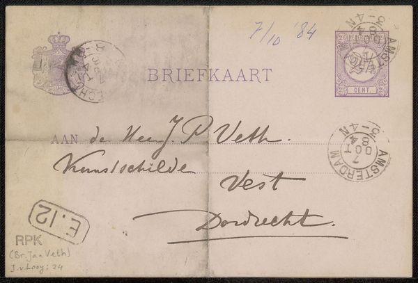 Jan Toorop created this briefkaart, or postcard, to Philip Zilcken, using ink on paper. Note the seals, one from Amsterdam, the other a Dutch postage stamp: circular forms that frame symbols of authority. Seals are ancient emblems. Consider the seals of antiquity, royal signet rings, or even the wax seals on letters of old. They are potent symbols of validation and power, used to authenticate documents and assert authority. The visual language of the state – the crown, the lion rampant – echoes through centuries. These symbols resurface throughout history, evolving yet retaining their core significance. In our collective psyche, they still evoke feelings of officialdom, of messages that carry weight. The humble postcard, transformed into a carrier of civic identity. The act of sending a postcard becomes a gesture imbued with echoes of history.