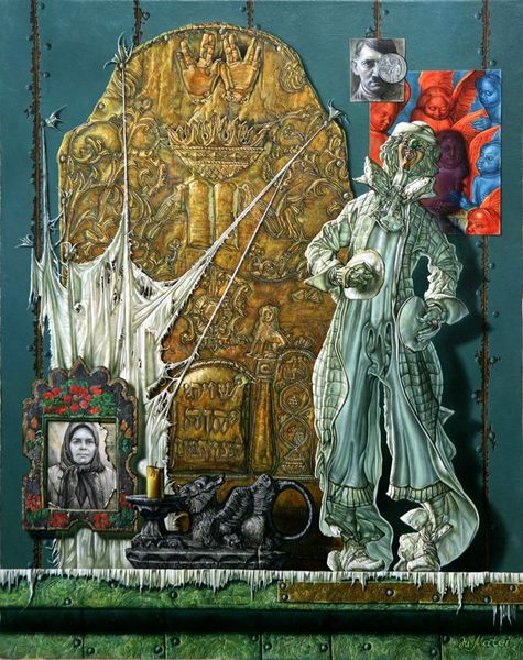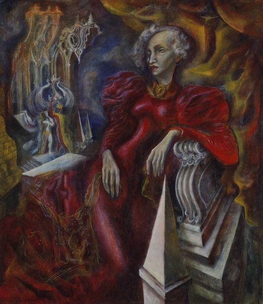 Salvador Dalí painted this portrait of Mrs. Harrison Williams, with his trademark precision, building up the image in layers. It’s a really fascinating mix of representation and wild, dreamlike imagery. I love how Dalí's use of color creates this strange, almost eerie atmosphere. Everything is tinged with a sort of green hue, which gives the whole composition a surreal, otherworldly feel. Then there are the drips, especially around her dress, that offer such a contrast, bringing an element of chance into the equation. They create a sense of movement and fluidity, which is super interesting against the more rigidly defined forms of the architecture. The architecture itself reminds me of Piranesi, or maybe even de Chirico, artists who also played with perspective and scale in unsettling ways. It’s like he’s inviting us to question what’s real and what’s not.