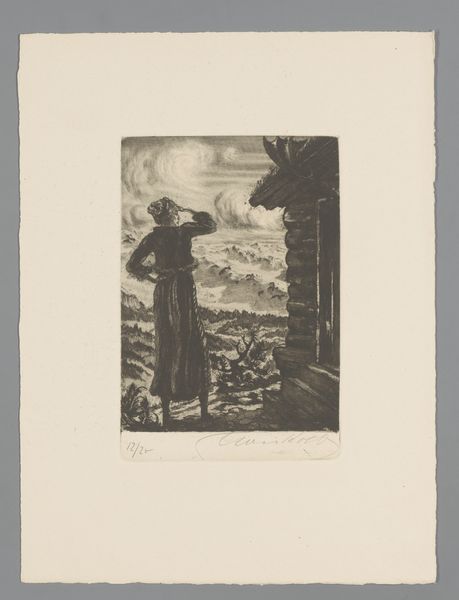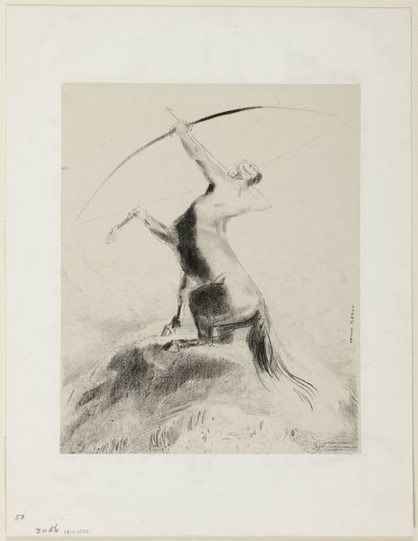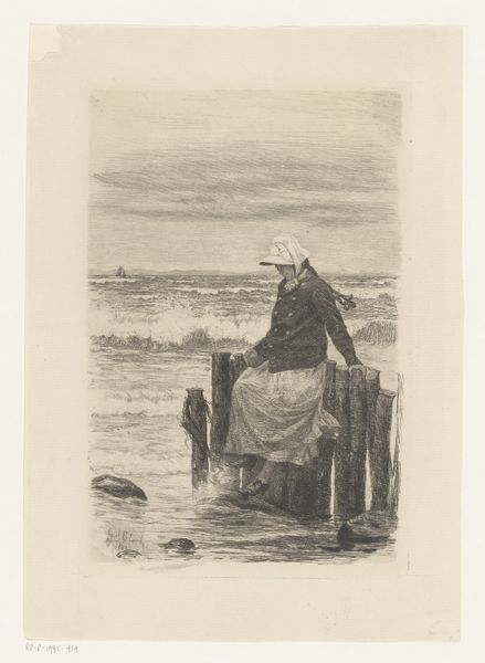 Editor: This woodcut print, titled "Man plaatst een balk in een brugconstructie" by Duilio Cambellotti, made before 1965, depicts a nude figure perched atop some bridge pilings. I'm struck by how the stark lines and strong contrast give it this feeling of both vulnerability and resilience. What do you see in this piece, considering its historical context? Curator: Well, beyond the formal aspects, I'm drawn to how this print participates in a larger discourse surrounding labor, particularly the romanticization, and at times, idealization of manual labor, often presented for public consumption. The figure's nudity isn't simply about aesthetics; it can be read as stripping away societal artifice to present raw, essential humanity engaged in nation-building. Where and how do you imagine this piece may have been originally shown? Editor: Possibly in some sort of public exhibition, intended to stir up patriotic feelings, especially after some sort of crisis, perhaps, and rally people behind rebuilding efforts? Curator: Precisely! Now, considering Cambellotti's involvement with the cultural politics of his time, we might ask whose narratives were prioritized. Do you think depictions of labor like this one uniformly served all segments of the population, or were they tailored to specific audiences with specific agendas? How does this print either uphold or challenge conventional artistic portrayals? Editor: I suppose that such an idealized portrayal might alienate those experiencing the actual hardships of such manual labor. Maybe this artwork served more as propaganda than art. Curator: That's a critical observation. So, this exercise shows us that an image can operate on multiple levels: aesthetic, political, and social, making it worthwhile to engage deeply with both the artwork, and also its cultural context. Editor: Definitely! It's fascinating how just considering those things, that shifts my understanding completely.