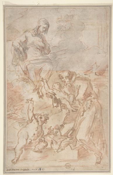 Laurent de La Hyre created this drawing, "St. Roch Interceding before the Holy Trinity for Plague Victims," using black chalk on paper. Chalk offers a directness that contrasts with the more laborious and meticulous process of painting in oils. The powdery texture and range of tones achieved through smudging create a sense of immediacy, as if the scene were unfolding before our eyes. The material's inherent fragility mirrors the precariousness of life in the face of disease, a poignant reflection on the artist's own historical context. This medium facilitates quick studies and preliminary sketches, allowing artists to explore compositions and ideas with relative ease. Here, it perhaps served as a preparatory work for a larger painting, a testament to the skilled traditions and established hierarchies within the art world. By focusing on the material and the act of creation, we gain a deeper appreciation for the relationship between the artist, the subject matter, and the broader social context of the artwork. It challenges us to look beyond the surface and consider the labor, materials, and historical forces that shape our understanding of art.