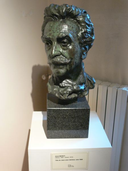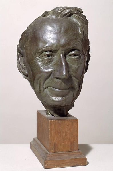 Editor: This is Auguste Rodin's sculpture of Gustav Mahler from 1909. It's incredibly intense! What do you see in this piece, beyond just a portrait? Curator: Beyond likeness, I see Rodin grappling with Mahler's legacy and position within a rapidly changing society. The sculpture captures the weight of Mahler's ambition, his struggles against anti-Semitism, and his revolutionary approach to music, all etched onto his face. Do you notice how the rough texture of the bronze contrasts with the smooth planes of his face? Editor: I do. It's like a battle between polished and raw, controlled and chaotic. Curator: Exactly! Consider the context. Mahler, as a Jewish composer in Vienna, faced considerable prejudice, forcing him to convert to Catholicism for professional advancement. The work also reflects Rodin's own struggles for artistic acceptance. Can we see a parallel here? Editor: Maybe a shared sense of being an outsider? I never really considered the societal pressures on artists like Mahler and Rodin. Curator: Absolutely. Both men navigated complex social landscapes. Rodin, challenging academic norms with his expressive style; Mahler, pushing the boundaries of symphonic form. Their works can be viewed as acts of resistance, asserting individual vision against oppressive structures. The intensity you noted – that's the fire of someone pushing back. Editor: It's incredible to think about how personal and political histories are intertwined within this object. Curator: Indeed. Looking at it that way shifts our understanding. It’s not just a portrait; it's a historical document, reflecting identity, power, and artistic defiance. Editor: Thanks, that gave me a totally new perspective on how to view Rodin's Mahler.