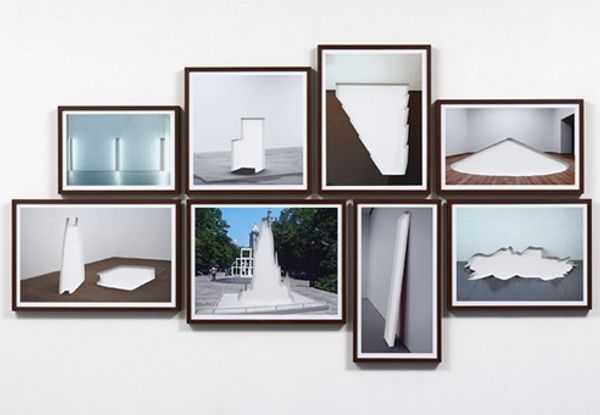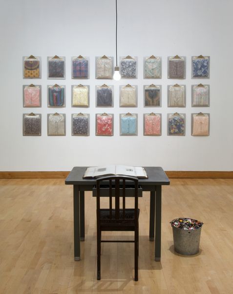 This space which looks rather like an artist's salon, combines diverse elements of West's work. Body sculptures, similar to his early pieces known as Adaptives, are stacked on the table to the right. On the left is a sculpture, or rather an anti- sculpture, which parodies the precise geometry of Minimalism. The couch is a recurrent element in West's work, suggesting the psychoanalyst's couch. West frequently co-opts the art of his friends and acquaintances into his own work - the drawings arranged on the wall are by a number of different artists whom he knows or admires. Gallery label, August 2004