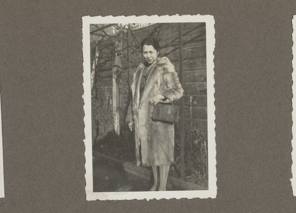 Editor: This is "The Redwood and the Raven" by Trisha Donnelly, it’s a photograph. The stark black and white creates a really striking image, and it makes me think a lot about the person photographed and the labor that went into this piece, especially the dark room process. What stands out to you? Curator: The materiality of the photograph itself is compelling. Look at the textures: the redwood bark, the silky dress, the paper’s surface. Donnelly is highlighting not just what's depicted but also how it's made. How does this interplay of textures affect your interpretation of the subject? Editor: It's like the physical world and the represented world are colliding. Thinking about it, it blurs the line between subject and object, doesn’t it? Curator: Precisely. Donnelly asks us to consider the act of image-making as a form of labor, and to understand the means of production as part of the artwork’s meaning.