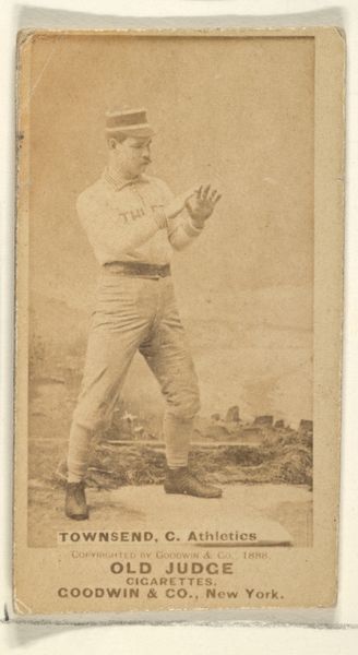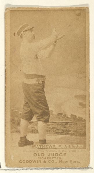 Goodwin & Company made this small baseball card for Old Judge Cigarettes sometime in the late 19th century. Here we see Robinson, the catcher for the Philadelphia Athletics. In an era marked by industrial expansion and shifting social norms, baseball emerged as a unifying force, promising both entertainment and a vision of American identity. This card, distributed with cigarettes, speaks to baseball’s growing commercial appeal and its intimate connection with consumer culture. Yet, this image is more than just a portrait of an athlete. It reflects the racial dynamics of the time. Despite baseball's claims of being a national pastime, the sport was largely segregated. While Robinson is depicted here, numerous talented African American players were excluded from professional leagues due to racial prejudice, their stories often untold. This card then invites us to consider the narratives that were promoted, and those that were suppressed, in the making of American sporting history. While offering a nostalgic glimpse into the past, it also serves as a reminder of the complexities and inequalities that have shaped our nation’s identity.