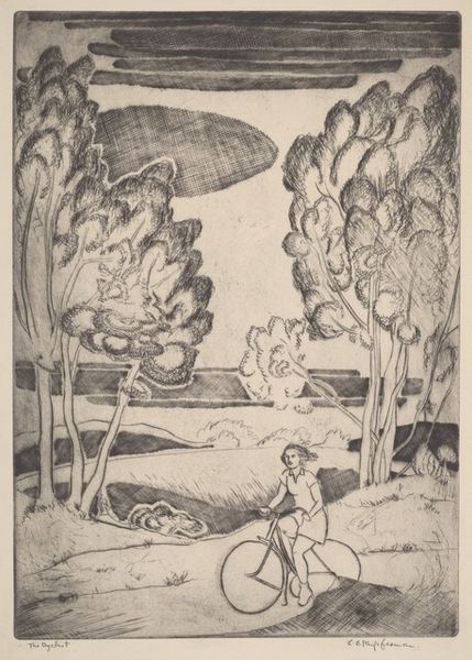 Curator: Before us is "Tattercoats dancing while the gooseherd pipes," a watercolour illustration crafted in 1927 by Arthur Rackham. Editor: It possesses such a fragile beauty. The delicate lines and pastel washes create a dreamlike atmosphere, a gentle melancholy hangs over the scene. Curator: Rackham’s visual vocabulary here is steeped in the Romantic tradition and echoes folk tales, doesn't it? He draws upon a cultural reservoir where nature is often imbued with sentient qualities and moral lessons. Note how he visually ties the figure of Tattercoats, dressed in rags yet poised with an air of delicate confidence, with the imagery of geese, landscape and gooseherd. Editor: Absolutely, there is a radical undertone woven in her attire. Her clothing is pieced together, reflective of societal fragmentation and the unseen labor that sustains opulent lifestyles. It is a poignant comment on class distinctions and the silent voices of those relegated to the margins. Curator: The image has that dualism in that Tattercoats might represent an archetype of transformation, a Cinderella figure on the cusp of recognition, emerging from the pastoral idyll into societal acceptance. But then, look closer and a complex reading about beauty standards emerges, one of exteriority versus interiority, the geese representing conformism while Tattercoats breaks the mode. The gooseherd piping music seems a call against societal conventions and embracing the whimsical! Editor: That resonates deeply! The image subtly interrogates these narratives of upward mobility and questions what we truly value as a society, and what performances one has to adopt to transcend oppression. There is an empowerment displayed here that resists the traditional fairy-tale trope where worth is tied to attire. Curator: Indeed! Rackham employs symbols that speak to both a desire for narrative resolution and a deeper societal critique. It remains relevant. Editor: It's amazing how a seemingly simple illustration can hold such layers of socio-political commentary when we peel it open. What a treasure, from both art historical and social justice lenses!