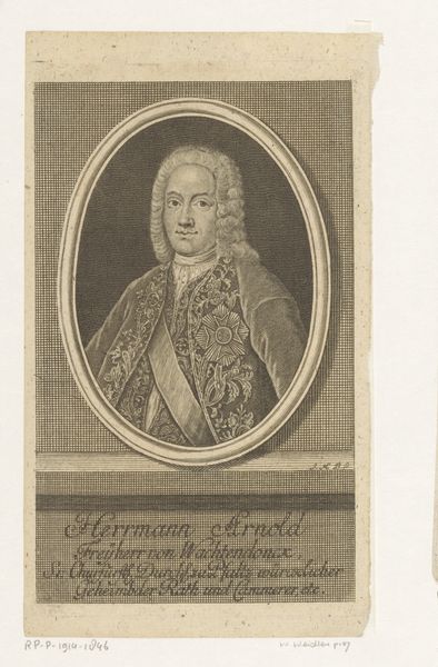 Curator: What a striking example of late Baroque portraiture! Editor: This is "Portret van Heinrich Kajetan von Blümegen," an engraving made sometime between 1749 and 1796 by Johann Ernst Mansfeld. The detail is incredible, but there's a stiffness to it. How would you interpret this work beyond just a portrait? Curator: We need to unpack the visual language of power. This isn't just an image; it's a carefully constructed statement about identity, status, and privilege. Note the elaborate attire, the rigid posture. What does that communicate to you about Blümegen’s position within the Austrian aristocracy? Editor: It screams authority and wealth, definitely. I mean, look at the inscription too! He's practically listing all his titles. Curator: Exactly! And that inscription isn't just text; it's integral to the visual rhetoric of power. In that era, who had access to commissioning and circulating images like these? Consider the role such images played in maintaining a hierarchical social order. Who was being represented, and more importantly, who *wasn’t*? Editor: So, you're saying that beyond the artistry, these portraits reinforced social inequalities. It served as propaganda, almost. Curator: Precisely. How might viewing this artwork through the lens of critical race theory or feminist art history shift our understanding of it? For instance, what’s absent from this portrait, whose stories aren’t being told? Editor: That gives me a lot to think about. I was focused on the artistic style, but I see how it's connected to broader social power dynamics. Thanks for opening up that perspective. Curator: It is a reminder that art never exists in a vacuum.