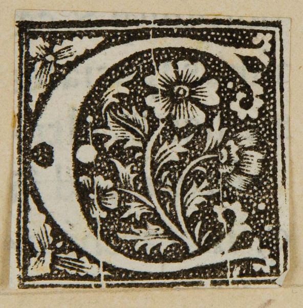 Curator: This intriguing piece, titled "Letter Q", is an anonymous work housed here at the Harvard Art Museums. Editor: It feels so dense, almost claustrophobic, with that tight field of floral motifs woven within the stark black and white. Curator: Indeed. The composition uses positive and negative space masterfully. Notice how the 'Q' itself, rendered in white, simultaneously defines and is defined by the black background. Editor: The central flower, crowned with that spiraled form, really draws the eye. It suggests growth and maybe even some deeper, hidden knowledge. Curator: I see it more as an exercise in form. The repetition of the floral elements creates a compelling rhythm. The artist's control of line and texture is simply impressive. Editor: Perhaps. But I sense more than just skill; there's a touch of mystery, of the symbolic weight once given to illuminated letters. Curator: I appreciate its visual dynamics more now, and the interplay of form. Editor: And I'm left pondering what stories and secrets this 'Q' might want to tell.