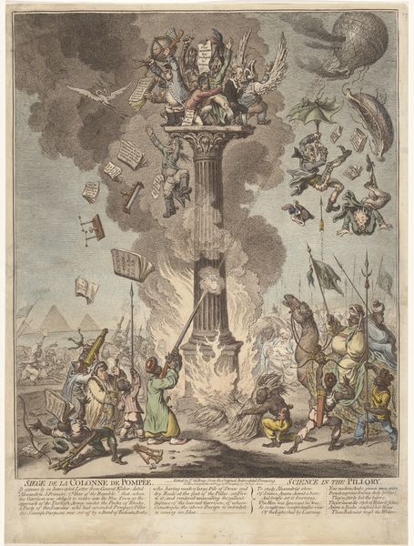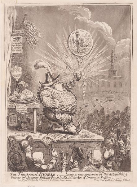 This hand-colored etching, made by James Gillray, sometime around 1806, is a satirical take on British politics. The printmaking process is front and center here. Gillray was a master of etching, a technique that allows for detailed linework and the easy reproduction of images. This was crucial for political satire, as it allowed his commentary to reach a wide audience. The etching is characterized by its caricature-like figures and elaborate allegorical presentation. The satirical edge of this print is emphasized by the materials and production processes of printmaking, which enabled mass distribution. Look closely, and you'll see the image is all about conveying a message of power and corruption. It is worth considering how Gillray used these graphic techniques to take aim at the political elite and the systems that supported them. This speaks to a broader history of printmaking as a tool for social commentary. Ultimately, this print reminds us that art can be both a reflection of and an intervention in the world around us, using the processes of production to engage in wider issues of labor, politics, and consumption.