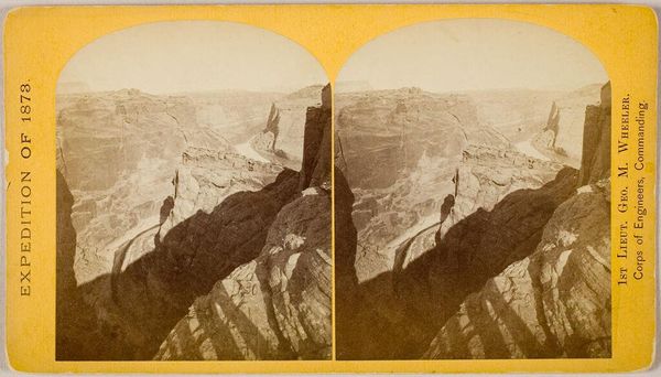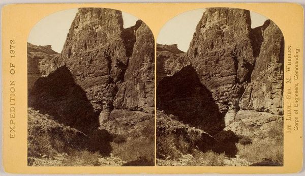Editor: Here we have John K. Hillers' "Escalante Cañon," a vintage photograph. The textures of the canyon walls are incredible. What can you tell me about it? Curator: Consider how this stereograph was produced and consumed. Hillers worked for the U.S. Geological Survey. His images weren't primarily art; they documented resources for exploitation. Were these landscapes destined for preservation or extraction? Editor: So the photograph itself is a tool? Curator: Exactly. The materiality of this image, its production, and distribution, reveals a complex relationship between representation, resource management, and the transformation of the American West. What does it mean that these images are now in a museum? Editor: That really shifts my perspective!