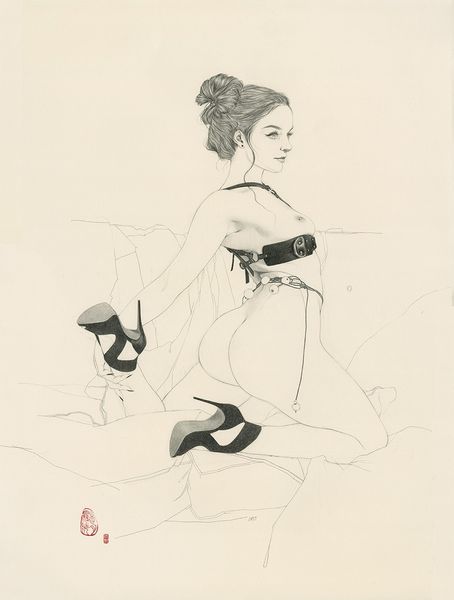 Editor: This is Charlotte Berend-Corinth's "The Dancer Anita Berber," currently residing at the Harvard Art Museums. The stark contrast between the solid boot and delicate lines everywhere else is striking. What can you tell me about the cultural context of this piece? Curator: Well, Anita Berber was a rather controversial figure, a Weimar-era dancer who pushed boundaries. Berend-Corinth's sketch captures that spirit, wouldn't you agree? The work hints at the changing role of women and sexuality in public life during that period. Editor: So, the sketch is less about the individual and more about what she represented? Curator: Precisely! It provokes questions about the gaze, the artist's perspective, and the public's fascination with figures like Berber. Editor: I see, it gives an interesting glimpse into the social climate of the time. Curator: Exactly, a reminder of how art engages with society and influences cultural dialogues.