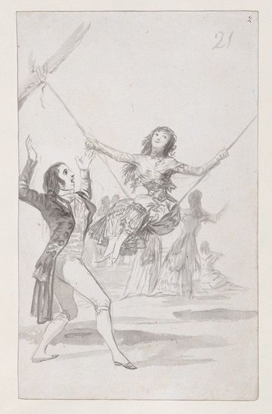 Francisco de Goya rendered this graphite drawing portraying a young woman weeping and covering her face, attended by two men. This motif, the face obscured by hands, echoes through time. We see its ancient roots in depictions of mourning figures from antiquity, a primal gesture of grief and despair. This motif is not merely a physical action, but a potent symbol of inner turmoil, a visual echo resonating across cultures. Think of similar poses in Renaissance paintings depicting the deposition of Christ, where grief is palpable and visually striking. The very act of covering one's face suggests a desire for concealment, a retreat into the self. It speaks to the subconscious processes of memory and inherited emotional responses. Goya captures not just an individual's sorrow, but taps into a wellspring of collective human experience. The figure, shrouded in shadow, conveys an emotional intensity that transcends the immediate scene. This gesture resurfaces through art history, each time molded by the anxieties and passions of a new era. It reflects the cyclical nature of human emotion and its expression.