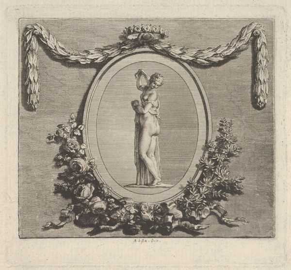 Editor: Here we have Reinier Vinkeles' engraving from 1773, "Allegorical Representation with Bust of Sybrand Feitama." It feels very much of its time, with that incredibly detailed line work and classical imagery. What stands out to you most when you look at it? Curator: I'm immediately drawn to the process. Look at the labor involved in creating such detail with engraving tools. Each line is a deliberate act, a physical exertion. And think about the cultural context: why was engraving the chosen medium for commemorating Feitama? Editor: Because it's reproducible, right? It allows for wider distribution. Curator: Precisely! This connects directly to consumption. Engravings were a way to disseminate images and ideas within a certain social stratum. Who could afford such prints? Who would have an interest in honoring Feitama? These questions tell us much about the social fabric of the time. How do you see the relationship between labor and value in this piece? Editor: Well, the detail certainly speaks to the value placed on skilled craftsmanship. But beyond that, it's also commemorating someone of importance... a portrait of a prominent member of society, but made reproducible. Curator: Consider, too, the material itself – paper. It seems ordinary today, but in the 18th century, the quality and source of paper held significance. This piece is as much about the socio-economic forces that shaped its creation and dissemination as it is about Feitama himself. Editor: I hadn't thought about paper as a deliberate artistic choice, thank you! I came in seeing a fancy portrait but am now struck by how its very creation involved tools, manual effort and commerce.