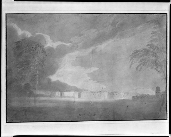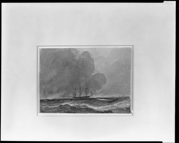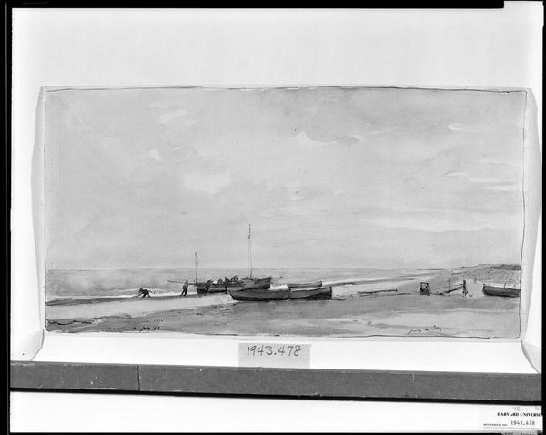 Curator: This is William Trost Richards' "Seascape," currently held here at the Harvard Art Museums. Editor: My first impression is one of melancholy, created through the monochromatic palette. The vast sky seems to dwarf the landscape. Curator: Indeed. Richards was lauded for his luminist style, capturing the transient effects of light on water. But considering his American context, his seascapes often evoke more than just visual pleasure. Editor: Absolutely. The coastlines in Richards’ work can be seen as a visual metaphor for the constantly shifting boundaries of a nation grappling with expansion, industrialization, and the legacy of colonialism. Curator: A fitting interpretation! The composition here, with its layered cloud formations and turbulent waves, reinforces that sense of instability. Editor: Precisely. It's fascinating to consider how formal elements contribute to the socio-political undercurrents of the piece. Curator: It makes you reflect on our own perspectives and biases as viewers. Editor: Agreed; these seascapes allow us to see the historical currents that still shape our world today.