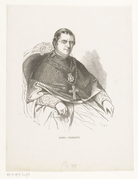 Francesco Ratti created this print of Cardinal Tommaso Pasquale Gizzi, using engraving techniques. This involved cutting lines into a metal plate, inking it, and then pressing paper against the surface to transfer the image. The fine lines that define Gizzi’s features and clothing required immense skill and time. Each mark meticulously carved, accumulates to form tone and texture. Looking closely, you can appreciate the level of control and precision needed to create such detail. The process, in effect, captures not just the likeness of the Cardinal, but also the social dynamics of artistic production in the 19th century. Engraving was a commercial practice. Prints were made in multiples and sold to a wide public. The intense labor involved would have been balanced against the potential for broader distribution. By considering the material and the means of production, we recognize that printmaking was not only an art form, but an industry.