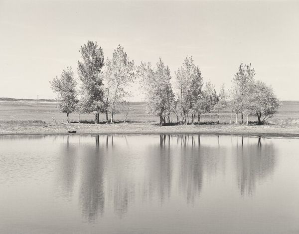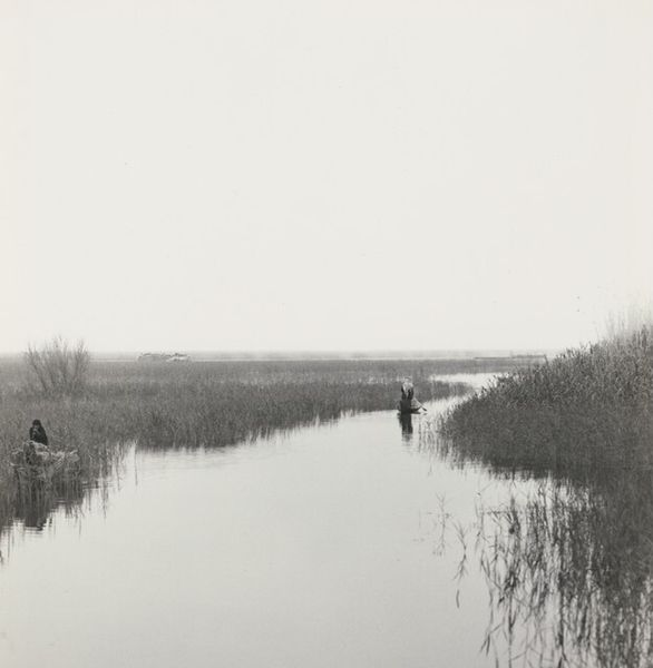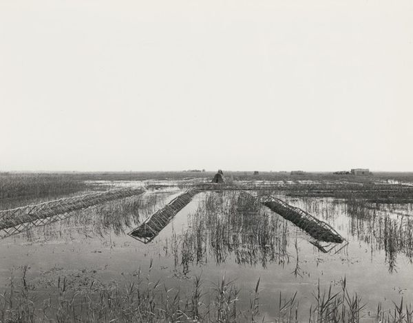 This untitled photograph was taken by Ursula Schulz-Dornburg, a German artist born in 1938. Often working in series, Schulz-Dornburg has photographed landscapes, border regions, and architectural structures. The photograph shows a watery landscape, and the sky seems to press down on the scene with the weight of whiteness. The tall reeds and marshy growth are mirrored in the still water, which creates a sense of both serenity and entrapment. Schulz-Dornburg is known for using photography to document places on the margins, spaces that have been forgotten or are in transition, and which often exist at the edges of society. The image here, like many of her works, presents the viewer with a scene absent of human presence, and the quiet stillness evokes a sense of solitude and contemplation. Ultimately, this photograph encourages us to consider the relationship between the human-built world and nature, while meditating on themes of memory, loss, and the passage of time.