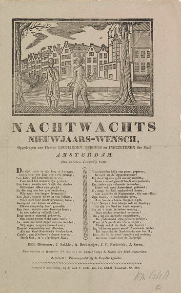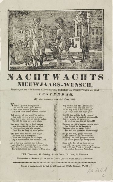 This print, made in Amsterdam in 1816 by Jacobus Wendel, is a New Year's greeting from the city's lamplighters. But beyond its surface, it offers a glimpse into the social fabric of the time. The image is rich in visual codes. Lamplighters are depicted providing light, a symbol of progress and safety, to the city's residents. The text below, a poem, reinforces this message, speaking of dispelling darkness and bringing joy. Amsterdam, a city built on trade and civic engagement, valued these public services. The lamplighters, as municipal employees, played a crucial role in maintaining social order. Prints like this reflect the importance of institutions in shaping everyday life. By examining archival records and understanding the economics of Amsterdam at this time, we can understand the complex social dynamics embedded in what seems like a simple New Year's greeting.