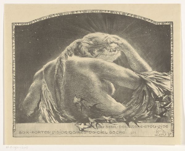 Editor: So, this is "Leeuwen," possibly from 1915, by Bernard Willem Wierink. It's a print, featuring these stately lions under a starry sky. The cool tones give it a rather…mythical feel, I think. What leaps out at you when you look at this work? Curator: Ah, Wierink. What a talent! Mythical is spot on, though I feel something beyond just cool tones; it feels almost like a faded dream. A recollection of power, perhaps? Look how the lions are rendered—less about raw muscle, more about suggestion, presence. The simplified forms and muted colours definitely push it towards the Symbolist aesthetic, evoking mood and ideas rather than a literal depiction. Almost heraldic, wouldn’t you say? Editor: Heraldic, yes, definitely! Like a family crest, but…wilder. It also strikes me that the stars above give it a sense of timelessness, like this scene has been playing out forever. Curator: Precisely! Those tiny pinpricks of light against the blue, endlessly repeating. Now, think about the period. This is likely 1915, in the throes of World War I. What message about strength, resilience, or even a longing for stability might Wierink be trying to convey through these lions gazing into eternity? It’s a potent visual language. Editor: Wow, I hadn’t considered the war context. It does shift the piece somehow, makes it less…fantastical and more…yearning? Curator: Yearning. Beautifully put! Sometimes, art whispers what history shouts. A quiet roar of hope amidst chaos, maybe? It all depends on who’s listening. Editor: I see it differently now, thank you! It's incredible how much context can shift one's perspective. Curator: Exactly. And isn’t that the beauty of art? It shifts, it speaks, and, hopefully, it awakens something new within us. A roar turns to a meow.