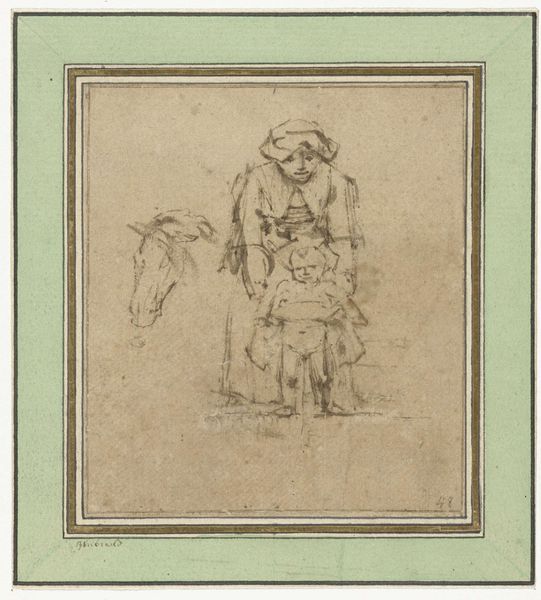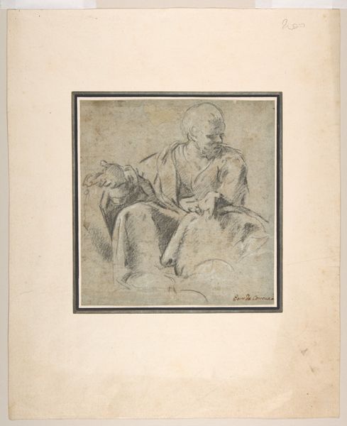 Curator: So, here we have Ludovico Carracci’s drawing, "Sitzender Mönch, eine vor ihm Kniende segnend", housed right here at the Städel Museum. It’s rendered in chalk and ink. My immediate reaction? An air of intense concentration and piety seems to radiate from it. Editor: Piety yes, but I see something else too. Look at the power dynamic. The seated monk, elevated literally, blesses a kneeling woman. It visualizes a hierarchical social structure prevalent at the time. This drawing serves as a potent reminder of the church's power and the gendered expectations it reinforced. Curator: True, the positioning does establish a clear visual hierarchy. But Carracci’s delicate use of line also reveals, to my eyes, a sensitivity in capturing the monk's hand gesture. He's bestowing a blessing, sure, but there's an almost gentle quality to it, not just power. Editor: I agree the draftsmanship is masterful, Baroque sensibilities shining through. Still, I can't ignore how this intimate moment, framed as it is, reinforces a system of submission. Art often presents seemingly simple scenes that upon closer examination reflect much larger ideological structures at play. How much agency does that kneeling figure truly possess within this societal construct? Curator: I can’t say I know how much agency she had, that's a blind spot in viewing the work that I hadn't seen until you highlighted that point. But her posture doesn’t communicate any explicit unhappiness; to me, at least. Perhaps her own faith gives her the necessary agency in that scenario. Carracci allows us to speculate, after all! Editor: Precisely. The beauty of art is in its capacity to open up questions, prompt further dialogues, challenge preconceived notions about not just the artwork itself, but also our own socio-historical placement. And to prompt further inquiries: What else are we failing to see in this very depiction, trapped within our own time and biases? Curator: Very good points. Makes me see Carracci's ink-and-chalk piece anew... I am certain viewers will consider all of these angles as they view it. Editor: Indeed, that’s the point! Now every time viewers encounter Carracci's "Sitzender Mönch", they might ponder that fascinating, yet problematic interplay between individual devotion and societal structures.