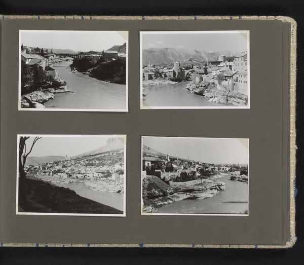 Curator: These two photographs, entitled "Fabriek en schip" – "Factory and Ship" – and created circa 1929-1930, present us with a fascinating industrial scene. Editor: My immediate reaction is one of subdued industrial grit. The monochromatic palette and grainy texture evoke a somber mood. The composition, dividing the image into two separate photographs, leads my eye back and forth. Curator: Yes, there’s a clear emphasis on the industrialized landscape. Look closely—the top image captures the factory itself, dominating the horizon line with its sprawling structures and smokestacks, while the bottom image is all about the means of transportation: the ship docked on the river, seemingly essential to the factory’s operation. The images point to the system of industrial labor. Editor: Agreed. The dark tones create a heavy atmosphere that reflects the nature of industry, I feel the artist wanted us to understand that link in more depth. The photographs draw our attention not just to their subjects but their interaction. Curator: It invites consideration of the raw materials flowing in and the finished goods flowing out. The factory requires these imports to convert natural assets into items that impact a larger environment, which we ultimately will consume as well. The photographer is compelling us to look beyond these two separate photographs but also how things work together. Editor: Indeed, a deeper viewing pushes us to examine each detail. Each line, massing, or shape invites introspection on what such things meant almost 100 years ago. Curator: The lack of human presence, too, feels deliberate. It reinforces the idea that the factory and the ship function almost as autonomous entities within a large system. I can just envision people at the time both relying on but being powerless against the system the factory represented. Editor: It certainly prompts reflections on industry's structural effects—but it is good for people to keep looking for meaning within it even after so long. Curator: An accurate assessment, in my opinion. Viewing those photographs helps ground our view that there is beauty to discover from any material object, whatever meaning it may take through human existence. Editor: An elegant summary. There's no right or wrong opinion, ultimately. These photographs show industry but can invite us to consider far more depending on each unique point of view.