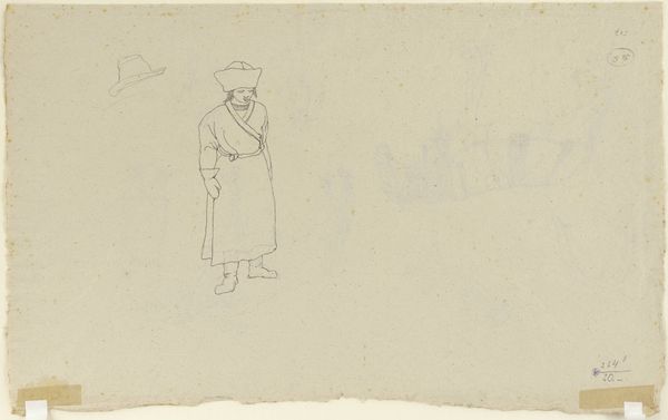 Curator: Here at the Rijksmuseum, we have George Hendrik Breitner’s “Man met hoed, op de rug gezien,” which roughly translates to "Man with hat, seen from the back," created sometime between 1887 and 1889. It’s a charcoal drawing, and quite simple. Editor: Yes, my first impression is one of fleeting observation. There's a casual, almost unfinished quality to it. It feels like a quick sketch capturing a moment in time. Curator: Exactly! Breitner was deeply invested in capturing the dynamism of Amsterdam life. Notice the gestural lines, particularly how they define the man’s coat and the tilt of his hat. It conveys movement and a sense of anonymity. Editor: The anonymity is interesting. He’s just a figure, any figure, in a rapidly modernizing urban landscape. Given the time, you can almost imagine him as part of the rising bourgeoisie, consumed in their activities, backs turned to societal upheaval or inequality. Curator: While that's a valid interpretation, I see it more in terms of Breitner’s engagement with impressionistic principles. His focus appears to be more on the optical experience - how light and shadow play across the figure, abstracting him in the process. He's simplified the human form down to its essence. Editor: But is that simplification devoid of social context? The figure’s posture, the very act of turning away from the viewer… it suggests detachment, perhaps even a subtle critique of the indifference that can come with urban life. Breitner positions us as outsiders, excluded from knowing who this man is, underscoring themes of alienation. Curator: Perhaps. Or perhaps Breitner, like many impressionists, was primarily interested in capturing the sensory experience of modernity. The formal elements of line and composition work to create a sense of immediacy that is free of heavy-handed meaning. The lack of detail pushes us towards the essence of pure form. Editor: I find the "lack of detail" quite telling. Is it artistic intention, a stylistic choice? Or, unintentionally, is it subtly illustrating social barriers, lack of access, deliberate ignorance even? Food for thought! Curator: Indeed. What begins as a simple sketch reveals the complexities beneath the surface, regardless of our intent to find them. Editor: Absolutely. A humble drawing which reminds us how even the most informal piece is situated squarely in a specific time, which we still examine today.