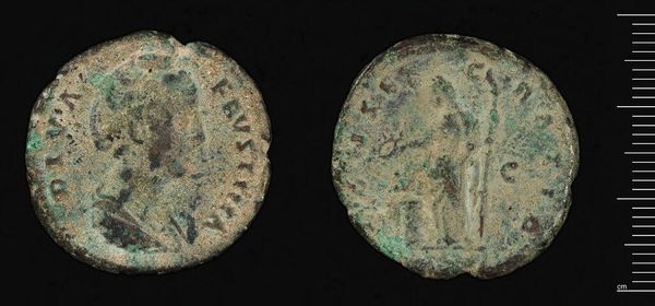 Editor: Here we have the Tetradrachm of Alexandria, created under Diocletian. It’s a coin, small and worn, but still captivating. How do you interpret its design? Curator: Observe the incised lines, the low relief. The artist's manipulation of the metal is critical. Note the circular form; it dictates the composition. Do you see how the effigy occupies the majority of the available space? Editor: Yes, it seems to emphasize the figure, even though it's damaged. Curator: Precisely. The corrosion, while obscuring detail, also adds texture. The artist's intent is locked within these formal qualities. Consider the balance, the interplay of positive and negative space. These are the keys. Editor: So, the form itself tells the story. I see it now!