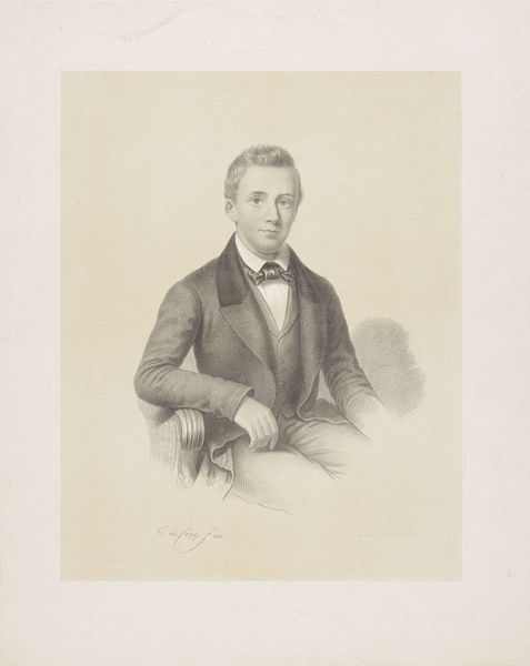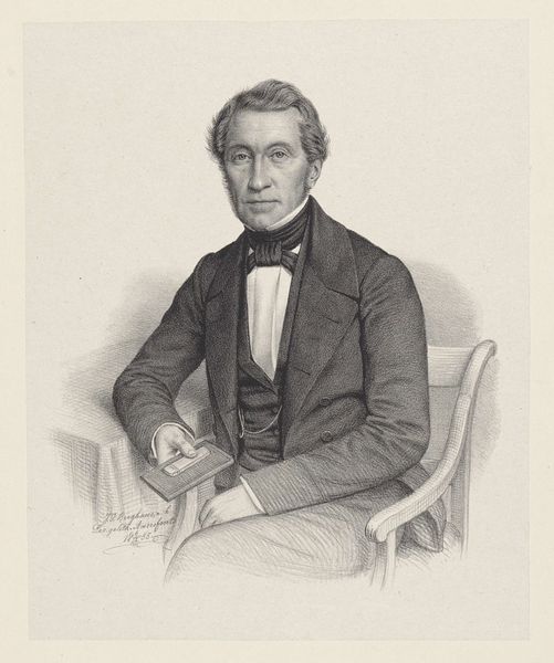 This is a portrait of H. van Hall by Johann Peter Berghaus, made using lithography, a printmaking process. The image is rendered through the careful application of ink to a prepared stone matrix, then transferred to paper. Lithography was a relatively new technology in the 19th century, enabling the reproduction of images on a scale never before possible. Unlike painting or sculpture, which were unique to the artist, lithography allowed for a democratization of imagery. The subtle gradations of tone, achieved through skilled manipulation of the lithographic stone, give the portrait a lifelike quality. The artist's skillful control of the medium, and the mechanical reproduction of the image, are key to understanding its significance. Lithography was not only a means of artistic expression, but also a reflection of the industrial age, mirroring the era’s changing dynamics of labor, production, and consumption. It raises questions about the value of the handmade versus the mechanically produced image, challenging conventional notions of artistic skill and originality.