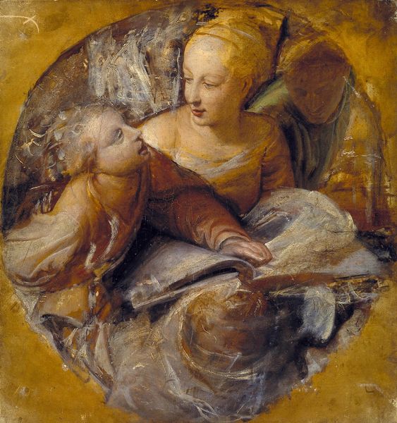 Paul Delaroche painted this intimate scene in oil on canvas, employing the traditional, time-honored medium of fine art. The warm, muted palette and soft brushstrokes give the work a gentle, comforting feel. Delaroche’s technique appears effortless. Yet, the application of paint here, the building up of layers to create depth and form, speaks to countless hours of training. It reflects a system of artistic apprenticeship that, though steeped in tradition, was also a mode of production. Aspiring artists would hone their craft in the studios of established masters before establishing their own distinct brand. Consider how these processes, though historically valued, have often been set apart from other forms of skilled labor. This painting reminds us that all making, whether fine art or craft, involves dedicated work, a thoughtful understanding of materials, and the passing down of knowledge. By appreciating the making of the artwork, we can reflect on the social and cultural values attributed to different forms of creative production.