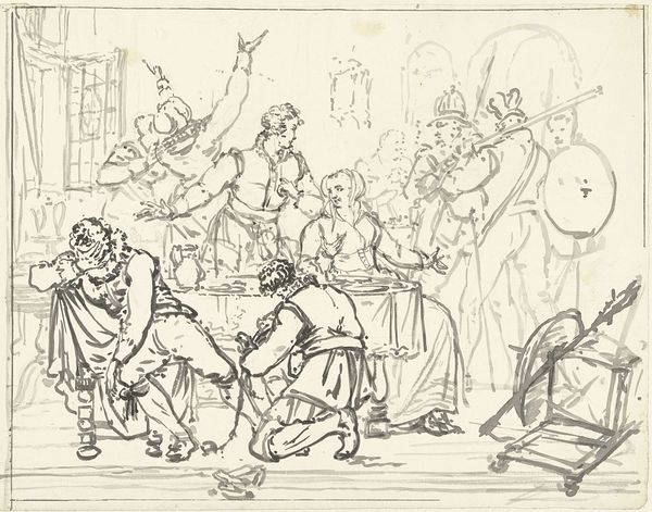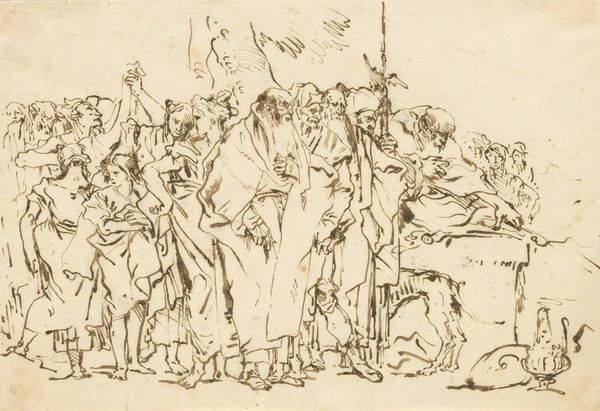 Albrecht Durer made this ink drawing, Soldiers under the Cross, in Germany during the early 16th century. Durer was a printmaker, painter, and theorist whose work sits at the intersection of the late Gothic and early Renaissance artistic styles. Looking at this piece, we should consider the place of religion in society at this time. This work depicts a group of soldiers, presumably Roman, gathered at the foot of the cross. Durer’s composition invites the viewer to contemplate not only the soldiers' presence but also their role in the larger narrative of the crucifixion, a pivotal event in Christian theology. As art historians, we delve into historical texts, theological interpretations, and social analyses to understand the complex interplay between art, religion, and society during the Reformation, recognizing that the meaning of art is often contingent on its socio-historical context.