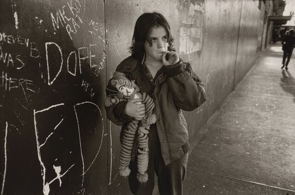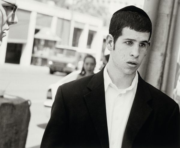 Leo Rubinfien made this photograph, Jerusalem, 2005, on the Tel Aviv Highway. Look at this kid's eyes! They're totally locked in on you. The black and white gives everything a real directness, no messing around. The whole image is like a study in contrasts, from the smooth skin to the rough stripes of the shirt, the perfectly coiled sidelocks against the buzz cut. Each element is so carefully observed, which makes you wonder about the actual encounter. Was it fleeting or prolonged? Rubinfien reminds me a bit of Diane Arbus. Both have this way of capturing people in their most vulnerable, yet also most powerful, moments. It's about seeing, really seeing, the complexities of human existence, and letting that ambiguity shine through. There’s always more than one story here.