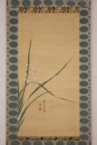 Editor: This is “Autumn Splendor,” made during the Yuan dynasty, sometime between 1271 and 1368, by Gong Jufei. It's ink and watercolor on silk. It has such a gentle quality; the forms are soft. What jumps out to you about its composition? Curator: Formally, I observe the masterful use of negative space, setting off the detailed insect and floral studies. Note the interplay of geometric shapes: the circular format contrasting with the organic lines of the flora. What effect do you think is achieved with this subtle geometric juxtaposition? Editor: Hmm… I guess that by placing the softer elements against a harsher geometry, Gong Jufei emphasizes their delicateness even more? The geometric shape feels still, in comparison. Curator: Precisely. Consider also the brushstrokes, they appear meticulously controlled, modulating from thick to thin, light to dark. It creates a sense of volume, does it not? A visual system encoding dimension, on what is in essence, a flat plane. How does this flatness of the plane, and volume of the image, impact the aesthetic effect, in your opinion? Editor: The flattening definitely highlights the surface texture, maybe making us more aware of the silk itself. It’s almost like the texture of the silk becomes another element in the piece. Curator: Yes, indeed. Reflecting on the structural qualities of the composition – the arrangement of elements in the pictorial space, combined with materiality – texture on silk -- this informs a refined artistic statement, one of delicate balance between stillness and vivacity. Editor: That makes me appreciate how all the parts come together to shape its particular impact, thanks!