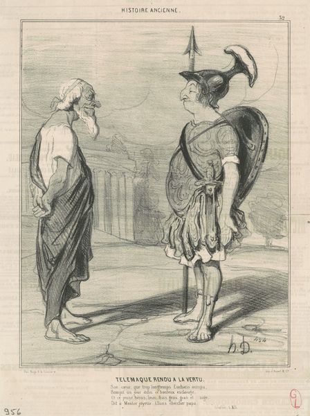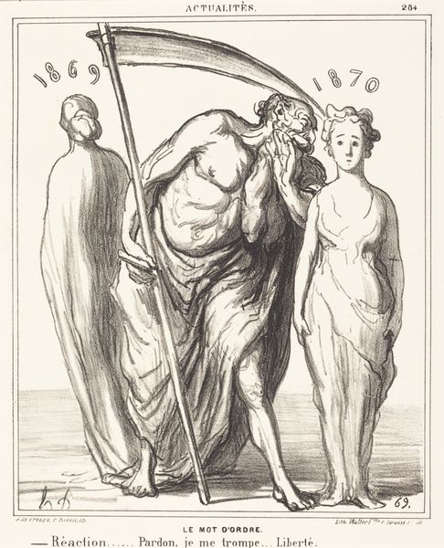 Honoré Daumier's lithograph presents us with potent symbols of Italy's plight. The figure of Italy is draped in classical robes, a staff in hand as if seeking support on a pilgrimage; this alludes to Italy's cultural heritage but also its vulnerability. Note the chains loosely hanging from the wrist of the man to her side. This imagery is not isolated; it echoes in Renaissance depictions of figures emerging from bondage, signaling liberation or rebirth. Yet, Daumier twists this symbol. Here, it suggests a patronizing, self-serving offer of help, tinged with a controlling motive rather than genuine freedom. The psychological weight of this image lies in its appeal to our collective memory of oppression and liberation. Daumier is engaging with something primal—the deep-seated human desire for freedom juxtaposed with the fear of subjugation. This tension provokes an emotional response, forcing us to confront the cyclical nature of power dynamics throughout history. The image serves as a mirror reflecting our own complex relationship with authority and autonomy.