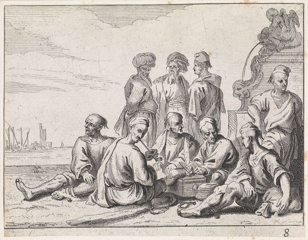 This drawing, 'Peasants', was made by Willem van de Velde I, likely in the mid-17th century, using pen and brown ink with gray wash on paper. Here, the artist uses humble materials to depict a group of rural people. Van de Velde's focus on the everyday lives of peasants brings attention to a segment of society often overlooked in more conventional artistic depictions of the time. The drawing is executed with remarkable economy of means, and the choice of a simple pen and ink wash emphasizes the immediacy of the scene. The artist uses texture and weight to convey the rough clothing and weathered faces of his subjects. Van de Velde captures the essence of labor and community, inviting us to reflect on the lives and contributions of those who worked the land. By highlighting these individuals, the artist elevates the status of ordinary people and challenges conventional hierarchies within the art world.