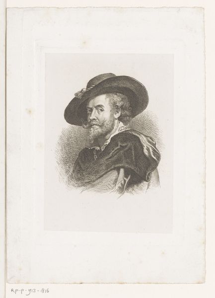Curator: Immediately, the gaze…it’s unwavering, but a touch melancholy, perhaps? There’s a stillness about him, a deep thoughtfulness etched into his face. Editor: Yes, it’s an engraving, from 1818 to 1832, by Charles Aimé Forestier, titled "Portret van Pierre Belon." Belon, the subject, was a fascinating figure, a 16th-century French naturalist, writer and diplomat. This piece offers a glimpse into how Enlightenment thinkers chose to depict the historical past. Curator: It's funny, knowing that context doesn’t change my initial feeling. He *looks* like he’s contemplating the origins of, I don’t know, birds! There's a real earthiness to his features; the beard certainly helps, framed as it is with the elegant ruff and smart hat. Editor: The Neoclassical style is key here, you see how it idealizes individuals associated with grand themes of discovery. These images weren't simply about likeness; they were intended to shape public perception. Think about how portraits become historical documents of power. Curator: Absolutely. The artist doesn't make him into a king or hero in armor, just an intelligent man capable of looking beyond the day-to-day, right? It seems more an honoring of intellectual prowess than physical authority, that comes through beautifully in the gradations from light to dark, so careful, yet with this underlying sensitivity to reveal his character. Editor: Consider the mechanics, though: prints allowed for wider circulation. It wasn't just about conveying inner character, but disseminating these figures to wider audiences. Belon becomes an accessible symbol for a particular historical period of discovery. Curator: He's a fine ambassador, and to have a portrait like this be part of the larger dialogue across ages and generations—that’s quite powerful. I feel almost honored just to look into his face, you know? What could *I* discover? Editor: So, this image presents an invitation not just to consider Pierre Belon himself but also to look closely at how imagery, especially the images in museum spaces, operate politically. A good point to dwell on I believe. Curator: I couldn't agree more!