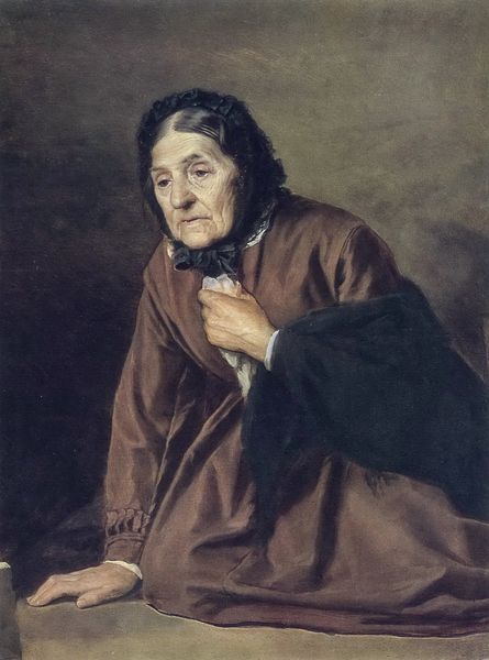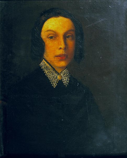 Curator: The quietude here is remarkable. There's such stillness in this 1846 oil on canvas, “Portrait of Alexander Michelis,” by Arnold Böcklin. His eyes are closed, head tilted downwards, giving a strong sense of introspection. Editor: It feels incredibly staged, though. You've got Böcklin positioning his subject in this very studied, romanticized pose. It looks almost too perfect. Were portrait commissions like this purely about idealized representations, or did material concerns play a role in the composition? Curator: There's definitely the pressure for portraiture at this time to flatter, or at least convey respectability, in line with academic art conventions. But it's also about asserting the status of the sitter within the social fabric, especially as photography started to become more commonplace. Editor: That's what I'm getting at! The rise of photography forced painters to justify the value of their labor. A portrait became not just a likeness but a display of skill, of material investment—time, costly pigments, expensive canvas. Was Böcklin making a statement about the value of handmade art in a machine age? The labor! Curator: Perhaps. Considering the socio-political context of 1846, this could be seen as an attempt to imbue his sitter, Alexander Michelis, with a particular sense of dignity. Böcklin positions his subject with an undeniable air of seriousness, even pensiveness, at a time where Romanticism as a cultural force was very powerful in establishing an image of the artist and the intellectual. Editor: That dark coat and carefully arranged collar speak to it too, don’t they? It’s an interesting study in texture—the rough weave of the cloth in opposition to the almost porcelain-like smoothness of Michelis' skin. I wonder if Böcklin used particular grounds or varnishes to achieve that contrast. Curator: A crucial aspect often missed. How artists employed specific materials significantly impacted how their work was perceived and what societal roles it played. Thanks for calling out those material components. Editor: Of course. Considering these details gives us an understanding of the historical and the production context, making such works more accessible, more meaningful.