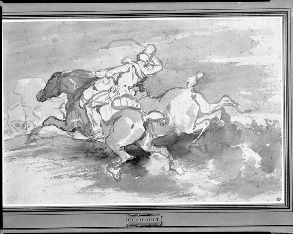 Editor: This drawing, "Amazons on Horseback" by Pierre-Jean David d'Angers, captures a dynamic energy. The figures seem to burst forth. What symbols do you recognize at play in this composition? Curator: The Amazon, eternally caught between history and myth, speaks to a deep, enduring fascination with female power. Observe the horses, symbols of untamed, vital force. What does their chaotic arrangement suggest to you about societal anxieties? Editor: Perhaps a fear of female agency disrupting the established order? Curator: Precisely. The axe, the flowing robes... all these are potent visual shorthand. Through them, the artist conjures an entire narrative world, resonating with cultural memory. What do you take away from this experience? Editor: That symbols can carry so much historical weight. Curator: Indeed. They are echoes of enduring human concerns.