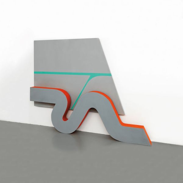 Curator: This is Ronald Davis' "Small Aqua," created in 1965. What's your immediate response? Editor: Clean and assertive, almost corporate. That stark aqua against the stark white reminds me of mid-century office spaces or a blueprint fragment. Curator: I see it as very much aligned with hard-edge painting, aiming for absolute clarity and geometric precision, striving to erase any trace of the artist's hand. But, consider that '65 sits squarely within rising Civil Rights movements. Editor: Are you suggesting this seemingly detached abstraction reflects a desire for clean, unwavering principles in a period defined by socio-political struggles? Curator: Perhaps. A quest for a more 'pure' society as filtered through abstract shapes. Color can often represent ideas; aqua could represent the pursuit of clean water as justice and accessibility, but at a remove, in coded language. Editor: You know, I immediately flashed back to the Bauhaus era, this feels to me a sort of echo, if slightly louder, as a memory. It's also calling out industrial precision—lines, shapes—building blocks from this era but pared down to the essential. Curator: Right, you are pointing at historical symbolism. Its pared-down nature aligns with Minimalism and a desire for reduction that permeates much of postwar art, where it rejects Abstract Expressionism. However, Davis still relies heavily on this relationship between the work, space and viewer, inviting them to create personal narratives and read emotional states into his artwork, that would otherwise, it would seem, try to negate those states. Editor: Precisely! The lines lead my eye and it asks if there might not also be tension and release here. It feels as though the lines might break away, a building, but in distress, from the weight it bears as it is so deliberately alone on this plain of the canvas. Curator: Interesting. So you see a visual representation of precariousness despite its obvious simplicity? That reading, and that tension, I believe gives "Small Aqua" it's longevity and continued impact. Editor: Yes, I think Davis successfully encoded quite a potent legacy within what might initially strike one as a clinical form.