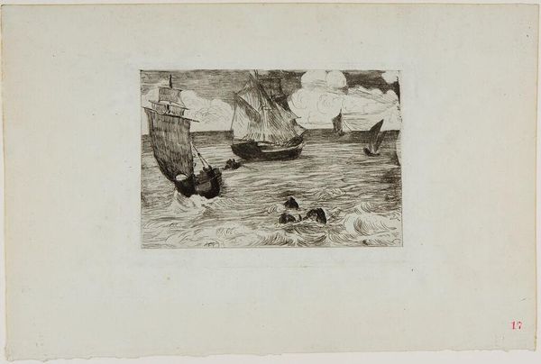 This print, *Vliegende Vissen*, or Flying Fish, was made in 1595 by an anonymous artist, using etching. Notice the stark contrast between the dark lines and the white paper. To create this, the artist would have coated a metal plate with a waxy, acid-resistant substance, then drawn the image, exposing the metal beneath. Immersing the plate in acid would then bite away the exposed lines, which were then inked and printed. The result is a precise, graphic depiction of a teeming seascape, complete with ships, whales, seals, flying fish and squid. But consider what’s not shown: the labor involved in seafaring, both commercial and exploratory. The ships on the horizon speak to a complex network of trade, colonialism, and resource extraction. This print offers a sanitized, almost whimsical view, obscuring the human cost of maritime expansion. It serves as a reminder that the materials and processes used to create an image can be just as revealing as the image itself.
