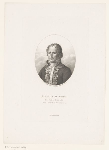Editor: Here we have Charles Aimé Forestier’s "Portret van Jean Baptiste Louis Joseph Billecocq," an engraving dating back to about 1821. It's a stately portrait; I am immediately drawn to the textures meticulously created through engraving. What stands out to you in this piece? Curator: I am drawn to the materiality of this print – an artwork produced for dissemination. Consider the labor involved: the engraver, the printer, the paper makers, and the social function of representing status through a reproducible image. The seemingly neutral depiction carries embedded economic and class values, wouldn’t you agree? Editor: Absolutely. So, even the act of making and distributing an engraving, a supposedly "lesser" art form, reinforced social hierarchies? Curator: Precisely. The very *act* of commissioning a print, typically intended for wider distribution, underscores the subject's desire for recognition within a broader public sphere. It challenges the supposed exclusivity associated with painted portraits. Editor: It’s interesting to think about the intersection of art and social structure even through materials. Thank you for that insight! Curator: My pleasure. It's crucial to remember art isn’t created in a vacuum; rather, its meaning lies in the labor and social relations surrounding its production and consumption.