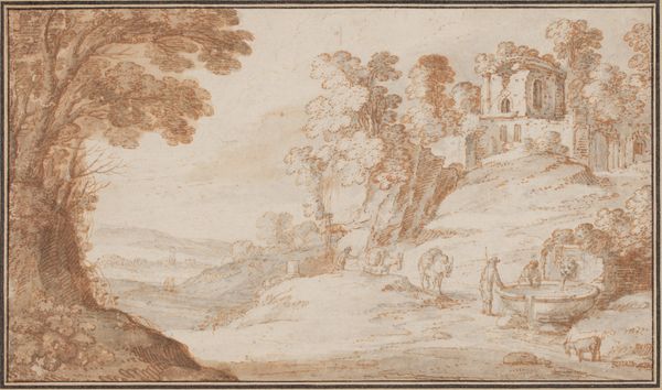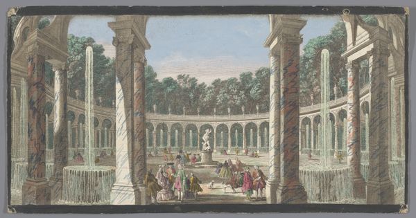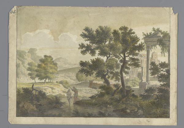 Schröder created 'Landscape with Beach, a Temple Ruin in the Foreground' using gouache on parchment. The artwork transports us to a classical scene, rendered with the delicate touch characteristic of the 18th century. Painted during the height of the Enlightenment, a period defined by reason and order, landscape painting served as a way to illustrate idealized visions. Schröder, working during this time, engages with the prevailing aesthetic. Note the figures populating the landscape; their postures and clothing tell a silent story. Perhaps they are participants in a staged performance, a reflection of the theatricality and display of power prevalent in aristocratic society? The crumbling temple, juxtaposed with vibrant nature, suggests a reflection on time, ruin, and the transience of human achievement. Schröder seems to ask us to contemplate not just the beauty of the scene, but also the narratives and histories embedded within. What stories do we project onto such idealized landscapes?