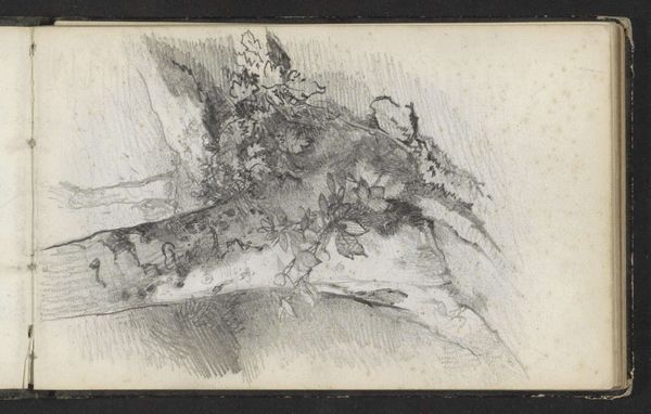 Editor: Today, we’re looking at Willem Witsen's "Rocky Coast near St. Andrews, Canada," made around 1915, using pencil and colored pencil on paper. It feels like a very immediate sketch; almost a study in textures. What stands out to you in this drawing? Curator: Immediately, I am struck by the artist’s emphasis on line. Consider how Witsen has used varied pressure to delineate the forms; notice the thicker, darker lines defining the edges of the rocks, compared to the softer, more suggestive lines representing the water. Do you see how this technique creates a clear hierarchy of visual elements? Editor: Yes, I see it! The sharp outlines make the rocks feel very solid and present, while the water almost disappears into the background. How does this emphasis impact our perception of the scene? Curator: It guides our eye to perceive the intrinsic structures of the coastline itself. He directs our focus onto the morphology, on the material. The composition doesn't simply represent a coast; instead it asks us to contemplate the forms. Consider the repetition of horizontal lines: the layering echoes geological strata, inviting an interpretation about the landscape's slow formation. Do you agree? Editor: That makes a lot of sense. I hadn't thought about how the lines could suggest the age of the landscape itself. So, you're saying it's less about capturing a scene and more about exploring its essential components. Curator: Precisely. The drawing exists less as a representation, but more a presentation of formal concerns. Editor: I see that now! Focusing on the intrinsic elements like line and form provides a whole new appreciation for the artist's approach. Curator: Indeed. It reveals an artistic intent focused on elemental structure and form above narrative representation.