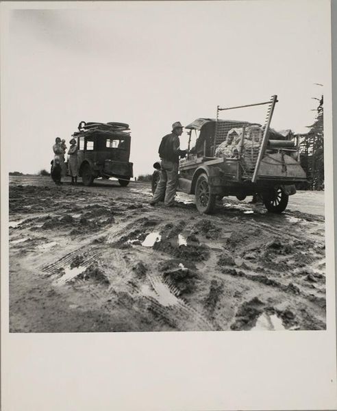 Nieuwenhuijs created this gelatin silver print, Dijkherstel, in December 1954; it’s about the work involved in mending a dike. The composition is all about horizontals, the waterline in the background, the constructed lines of the dike itself, and a line of men. The photograph has a grainy texture, and this softens the image, giving it a sort of blur, as though we are seeing the scene through fog or mist. This seems appropriate for an image about the weather, wind, and water. The artist has positioned the viewer at the lower edge of the dike, close to the ground and the rocks that make up its construction. To look at this image is to consider our place in the world, the way we negotiate with nature, building things to keep the waters at bay. The image makes me think of a similar picture of laborers by the German photographer, August Sander, it's like a portrait, but of working people. There's so much ambiguity and suggestion in this piece.