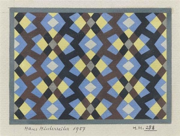 Curator: Before us hangs Hans Hinterreiter’s “Studie 248A,” created in 1950 using acrylic paint. Editor: My initial response is a sense of organized chaos. The interlocking shapes, primarily star-like forms and triangles, in reds, grays, and blues, vibrate against the dark background. Curator: It’s a fascinating example of Hinterreiter's exploration of geometric abstraction and non-objective art. He was deeply interested in mathematical relationships and how they could be expressed visually. Editor: Absolutely. There's a push and pull happening that reflects so much of what was occurring socially at that moment. The aftermath of war, and a period of recalibrating existing social systems and ways of being in relation with each other and oneself. There’s something unsettling and off-kilter that feels pertinent. Curator: His work fits within the larger context of modernism. After the second world war, artists were exploring new ways to express themselves beyond traditional representation. He's one of those figures reflecting this wider desire to start over and examine the essential ingredients of artistic creation. Editor: Considering Hinterreiter's interest in math, I think about the codification of knowledge, and its relationship to systems of power and exclusion, as expressed through the seemingly simple visual language of patterns and shapes. What sociopolitical narratives can we decipher through it? Curator: While his practice leaned heavily into the rational, these works still operate as art objects subject to our individual interpretation, just like how we can explore its potential for social critique. And that tension between cold mathematical formalism and warm individual expressivity is something I think that continues to resonate. Editor: True. Seeing how "Studie 248A" uses basic shapes to spark conversations makes one question: does formalism exist to explore its own sake, or does the creation and curation of non-objective art also influence a political purpose within society? I keep finding the rhizomatic shapes hinting at deconstructed versions of societal power hierarchies. Curator: It’s an interesting thought to close on—leaving the viewers with this ambiguity on the connection between politics and art. Editor: Right, and as an intellectual invitation for new audiences to embrace that discomfort and explore where it leads them.