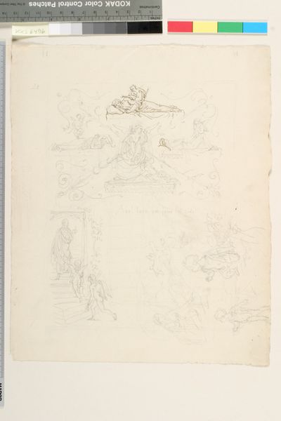 Lorenz Frølich rendered this pen and brown ink drawing, “Hør min bøn før vi bliver gamle som Priamos og Hekuba” – or “Hear my prayer before we grow old like Priam and Hecuba” – with delicate, flowing lines on paper. The sepia tones of the ink create a sense of antiquity, evoking classical scenes and themes. The artwork presents a study in contrasts: a seated, draped figure exudes calm repose, while an adjacent kneeling figure gestures with fervent expressiveness. This dynamic interplay is framed by symmetrical, decorative swirls, enhanced with hanging pendants depicting caricatured faces. Lower down, a second, less defined scene hints at communal gatherings and storytelling, grounding the upper scene in a more social context. Here, Frølich orchestrates a visual discourse, using lines and shapes to negotiate themes of ageing, memory, and supplication. The symmetry of the frame with the asymmetry of the figures creates a subtle tension, prompting questions about balance and fate. This exploration invites us to consider how visual elements not only depict narratives but also engage with the broader cultural and philosophical implications of storytelling itself.