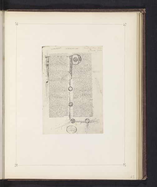 This is a photographic reproduction of a page from a psalter, made by B. Erdmann. Notice how the formal structure of the text dominates the page, creating a visual rhythm with its dense blocks of lettering. The texture of the aged parchment adds a tactile dimension, contrasting with the crispness of the reproduced print. The composition reflects medieval aesthetics, where the arrangement of text and illuminated initials serves both functional and artistic purposes. Semiotically, the lettering signifies more than mere words; it evokes the religious and cultural context of the psalter, a book of Psalms used in Christian worship. The shapes of the letters themselves, with their angular and stylized forms, create a visual code, connecting the reader to a tradition steeped in ritual and contemplation. The interplay between text and image challenges fixed meanings, inviting interpretation of the sacred through visual and linguistic signs. This challenges us to reconsider how we derive meaning from historical artifacts.
