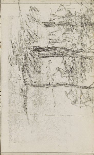Curator: It feels like looking at a half-remembered dream; insubstantial, yet holding a strange power. Editor: This is "Bomen rond een plas te Groesbeek," or "Trees around a pool in Groesbeek," a pencil drawing created by Willem Cornelis Rip around 1896 or 1897. Groesbeek is a village in the Netherlands. Curator: I see the essence of the place more than the precise location. The light reflected on the water, the texture of the foliage...it almost vibrates with energy. I feel as if I were right there next to that landscape with all that fresh air. Editor: Rip was working during a period when artists were increasingly interested in capturing fleeting moments and personal impressions, wasn't he? The rise of Impressionism definitely influenced the work's immediacy. And there are influences of Northern-Renaissance too in that desire for precision. Curator: It’s more than just fleeting; the trees themselves are potent symbols. Their reflections shimmer, suggesting a merging of reality and the subconscious. We are forced to ask ourselves, what’s real and what is the mirrored illusion? Editor: Good point. It's interesting that Rip chose pencil as a medium. A drawing can function in different ways; it is direct and spontaneous, but also lends itself to layered mark-making and tonal gradations if handled carefully. Curator: The choice underscores that delicate balance, doesn’t it? The way he handles the shading invites introspection; a quiet moment by the water’s edge can offer a doorway to deep reflection. Editor: Absolutely, the technique adds to this sense of intimate encounter. It suggests this drawing was created as a direct response to his presence there on the landscape. I imagine it served as the artist's own reflective practice. Curator: Yes. Ultimately, a drawing like this one carries memory. A place-memory that speaks about a world we long to immerse in, with which to connect and remember, through its trees and its soul. Editor: This artwork presents an intimate perspective. What might seem like an incomplete image to modern viewers actually becomes an open field of historical and environmental introspection, shaped by our own lived experiences in conversation with the cultural record.