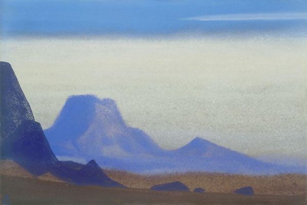 Nicholas Roerich captured Everest with tempera on canvas, a traditional medium lending itself to the ethereal quality he sought. The choice of tempera is important here. Unlike oils, which allow for blending and a glossy finish, tempera dries quickly to a matte surface. It requires a meticulous, layered application, building up tone and texture with short brushstrokes. This lends itself to the granular appearance that you see, echoing the rough, unforgiving terrain. Roerich was deeply interested in Eastern philosophy, and the laborious, meditative quality of tempera aligns with spiritual practices found in many cultures. The limited palette, dominated by shades of blue, further enhances the painting's contemplative mood. Ultimately, it's through the careful control of the material, the considered layering of paint, that Roerich invites us to consider Everest not just as a geographical location, but as a site of spiritual significance. It's a reminder that even in painting, the process is as meaningful as the finished product.
