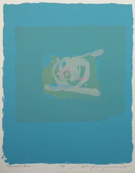 Curator: "Sartoris," created in 1963 by Friedel Dzubas. An example of color field painting done in acrylic on canvas. The artwork strikes me as deliberately sparse in its composition. How does it hit you? Editor: It feels strangely calming, almost meditative. The huge field of off-white, with the three color blocks. The soft, diffused color fields contrast beautifully with the starkness of the composition. Curator: Well, Dzubas arrived in New York during a vibrant period of abstract expressionism, didn't he? His approach here seems to be shedding the more angst-ridden and action-packed components, channeling instead a more pared-down aesthetic. He's simplifying to amplify the relationship between the colors themselves, creating these areas of almost pure sensation. Editor: Yes! It invites us to contemplate the intersection of color and emotion. The blocks of color might be quite simple on their own, but how they come together invites interpretation and connection. But it does also evoke something in art history. Barnett Newman explored the expressive capacity of color fields in the context of postwar grief, particularly in pieces from his "Stations of the Cross" series. Is Dzubas’ work perhaps an exploration into these similar sentiments during this period in American history? Curator: That's certainly an angle. I think the '60s represent this societal shift; that yearning for something brighter that can also recognize its socio-political background. The colour choices strike me as considered, the vibrant orange placed at odds against the subdued pastel-esque colours that lie closer to a horizon. Editor: True. There’s something in the large blank space separating these points of color that reflects the complexities of societal emotions and perhaps an insight into this struggle. Maybe a call for dialogue to bridge social, political, and even emotional divides during times of tension. It encourages a reevaluation of art's societal significance as an outlet for reflecting shared struggles. Curator: An outlet which speaks to a very specific modernist drive, but an argument with merit. Thanks for helping to unpick that! Editor: Likewise. This piece’s understatedness makes its underlying social awareness all the more affecting.