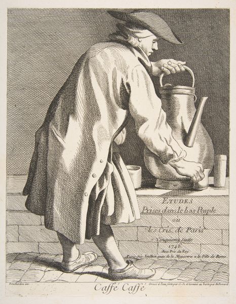 This print, Brandy or Cure Seller, was made in the 17th century by Abraham Bosse using the technique of engraving. Look closely at the image and you will notice that the incised lines create a network of marks on the paper surface, producing areas of light and shadow. Engraving like this was a highly skilled and laborious process. Bosse had to use a tool called a burin to cut lines directly into a metal plate. The density and direction of these lines determined the tones and textures of the final print. Here, the artisan used these qualities to depict the brandy seller in a highly descriptive way, drawing attention to the textures and form of his clothing, facial features, and the objects on his table. Engraving was a key method for disseminating visual information at this time. This print provides us with a fascinating glimpse into the culture of the 17th century, in which Bosse challenges the rigid hierarchy of art and craft, inviting us to appreciate the value of both artistic skill and commercial exchange.