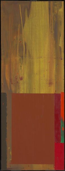 Antonio Palolo made this painting, medium unknown, with what seems like an intuitive sense for the process of layering. There’s something about the way the muted blues and greens are structured within that hard, almost brutalist, red frame, that gets me. I can see the hand of the artist, how the paint has been dragged and layered, revealing the history of its making. Look closely, and you will notice how the texture is uneven, with thin washes and areas where the paint is built up. Then there are these vertical stripes in the middle, each subtly different, kind of humming with their own frequency. I’m put in mind of Agnes Martin and the way she used grids to create a space for quiet contemplation, but Palolo brings a messier, more human touch. You can feel the artist grappling with the materials. It's like a conversation, with no fixed answers.